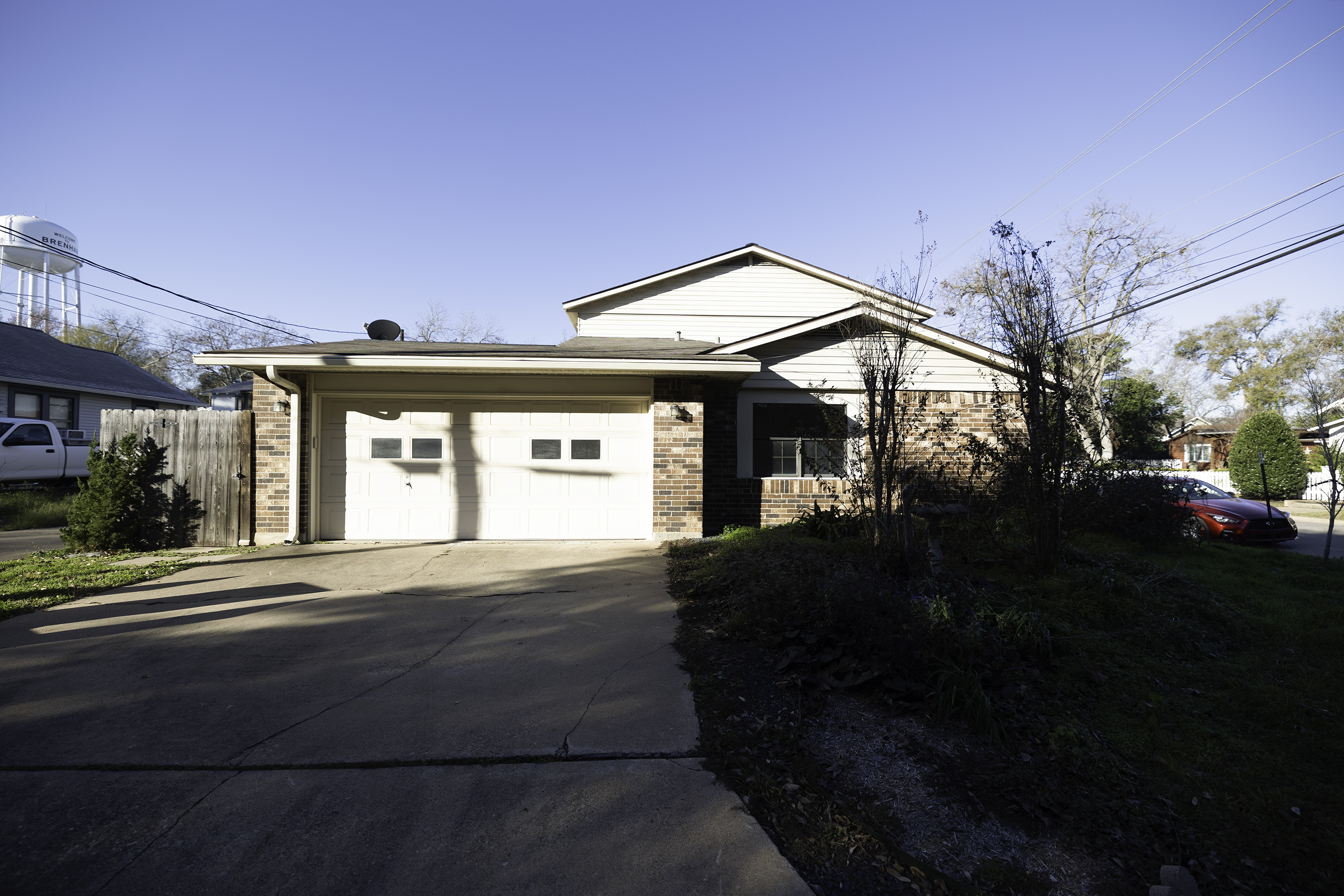 *LEASED* A stunner! Updated townhouse will be ready for move in. Master bedroom on the first floor of this two story house with en suite bathroom. Two bedrooms upstairs with a full bath. Master bathroom shower is a beauty in this home with a glass shower door and full bench inside. House is on a corner lot on a quiet street close to downtown Brenham. Beautiful exposed brick walls inside. 2 car attached garage with entry into the kitchen. Cute patio area with fence in the back. Must see in person! More photos coming soon.